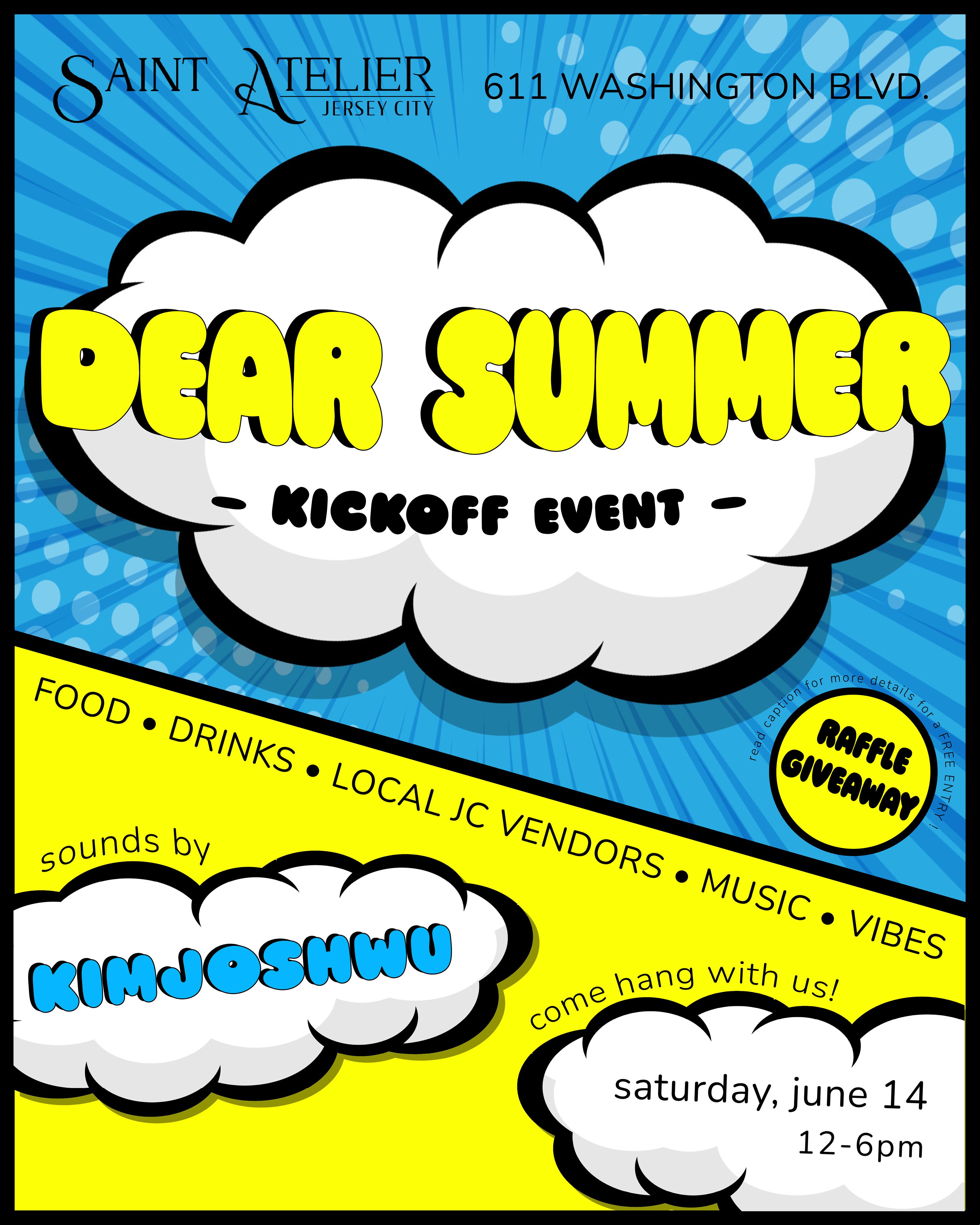 Saint Atelier asked me to design a flyer for their event, "Dear Summer"—a parking lot party with a DJ, food, drinks, local vendors, and raffle giveaways to kick off the summer.
